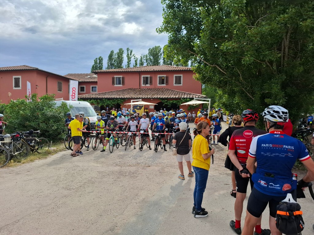Una randonnée è un viaggio sostanzialmente individuale: nessuno può pedalare al tuo posto o sostituirti nella tua fatica. Eppure, è impossibile ignorarne la fortissima componente collettiva. Centinaia di persone, ognuna con la propria storia, le proprie esperienze e la stessa passione per la bicicletta, si ritrovano a pedalare insieme per decine di ore. Ne nasce una narrazione corale, fatta di sfumature, incontri e gesti di pura umanità. Cenni d’intesa, racconti di viaggio, supporto morale e meccanico sono atteggiamenti estremamente comuni dentro questo universo. Se, quindi, partire insieme a dei compagni fidati e dal passo più o meno omogeneo, come per me sono stati Federico, Pietro e Marco (grazie di tutto ragazzi, è stato bellissimo condividere con voi la prima parte di questo viaggio), è certamente un vantaggio, anche qualora tu rimanga solo con la tua fatica, ci sarà sempre qualche nuovo compagno di viaggio – magari qualcuno che fino a pochi minuti prima era un perfetto sconosciuto, come è stato per me Antonio – che sarà disposto a fermarsi in cima a una salita per aspettarti e dirti: “dai non mollare la portiamo a casa insieme”.